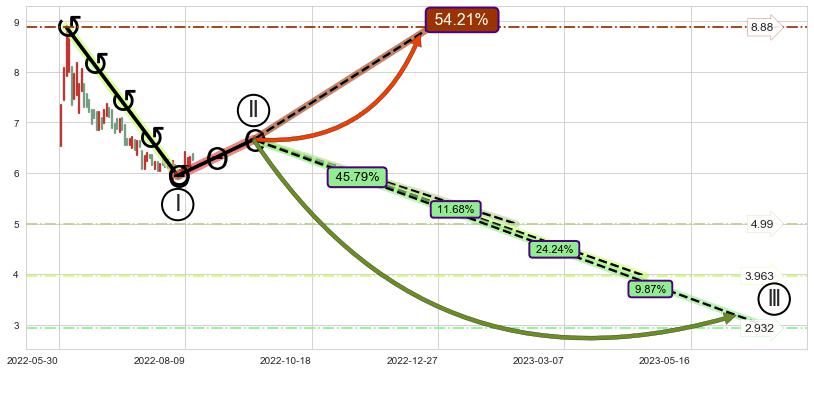 ♘ 支撑价格位5.45,可信任强度88.71%,距离最后交易2022-08-12形成的收盘价格6.29相差 -13.40%