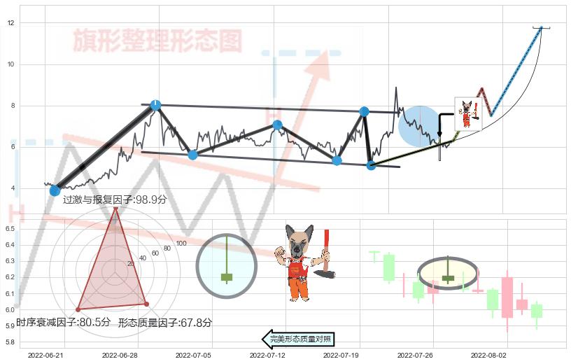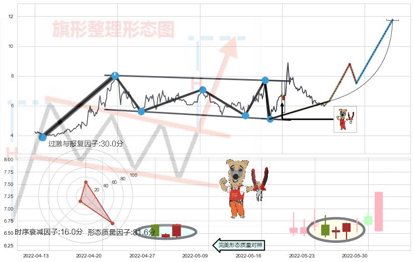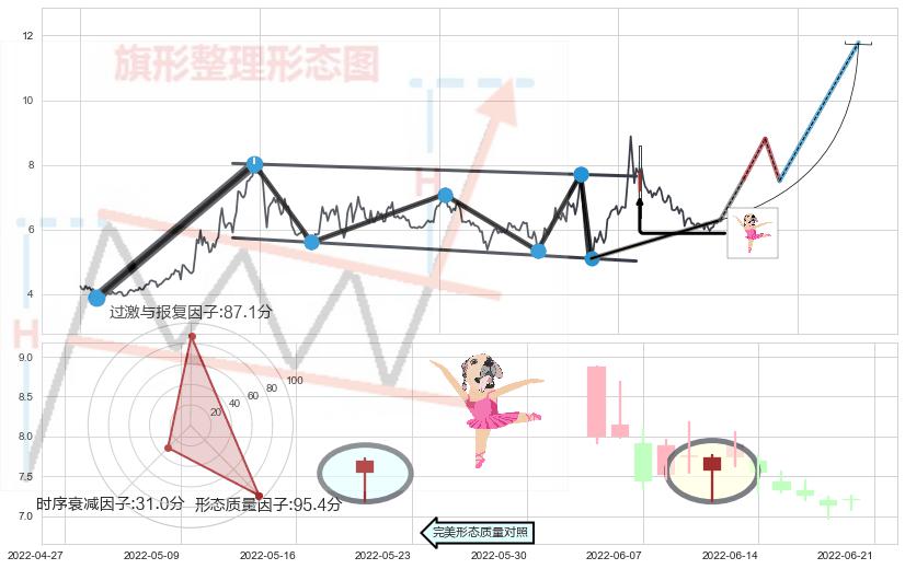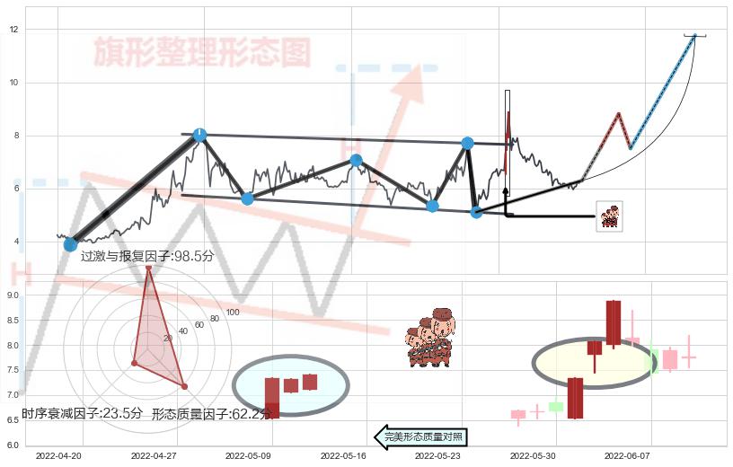 ➣ 【未确认突破,预测即将形成突破】降⚑旗形起点:2021-03-09, 预测突破点:2022-06-08,形态共302交易日