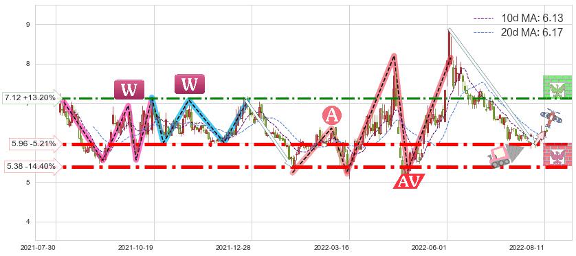 ♘ 阻力价格位7.12,可信任强度59.01%,距离最后交易2022-08-12形成的收盘价格6.29相差 +13.20%