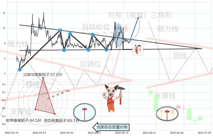➢ 锤头线(锤子线) 🔜 上升对称三角整理阻力突破转换支撑上涨 综合量化分数:51.98 【中性】