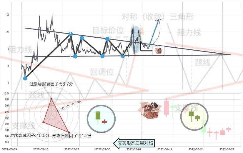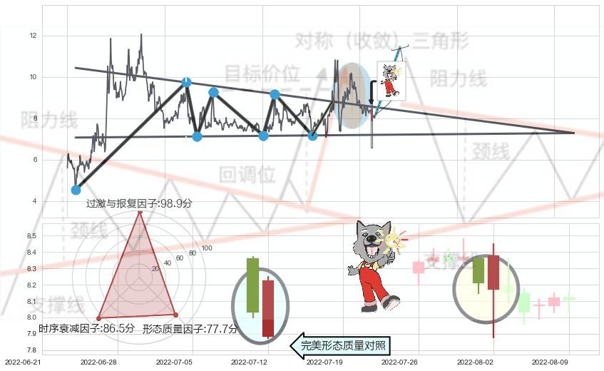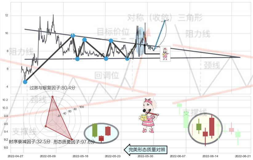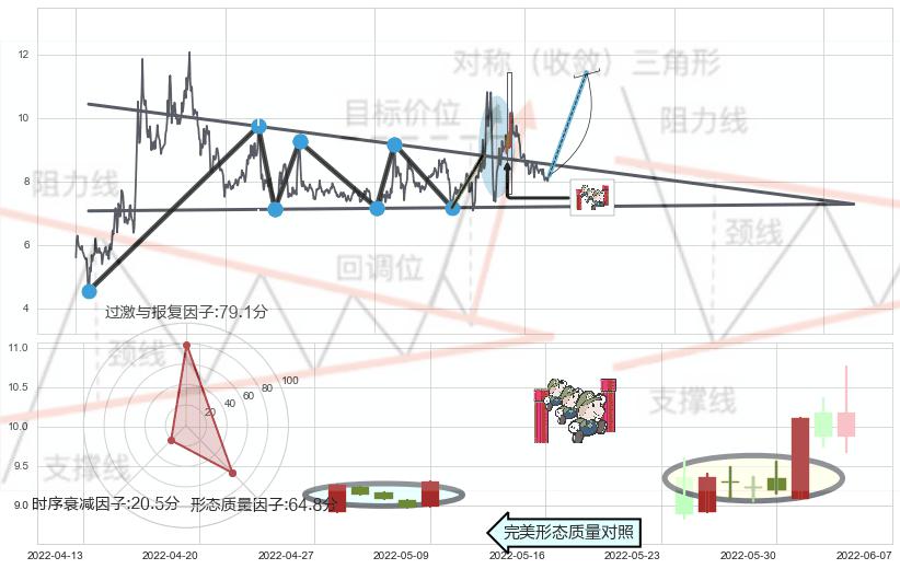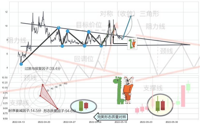 ➢ 【买1】: 激进型 买点 →(2022-04-01: 8.81 )形成突破上升【对称】三角形整理【整理】形态