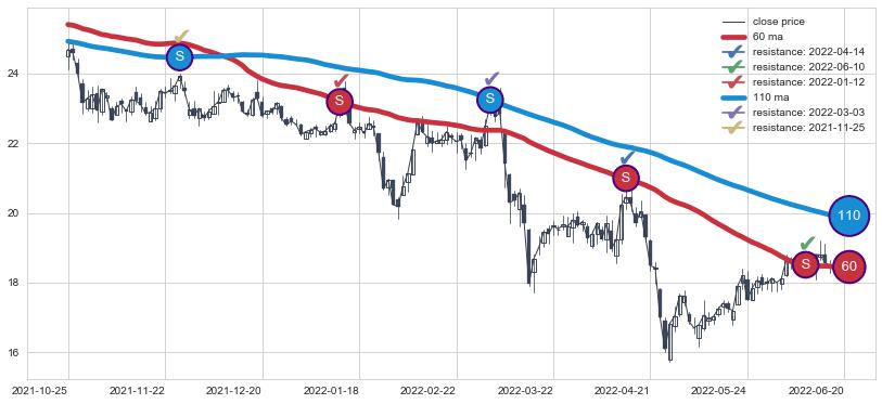 ➣ 55小时均线于(2022-06-28: 18.16)形成【死叉】基于【死叉历史模型】预测死叉后最低波谷价格: 15.68, 死叉后最低价格16.27,尚未达到预测最低波谷价格, 预期继续下跌