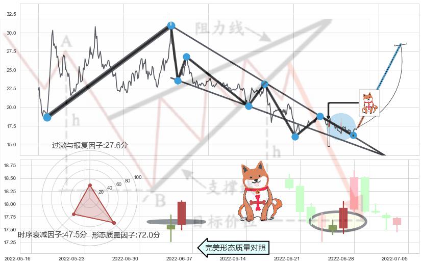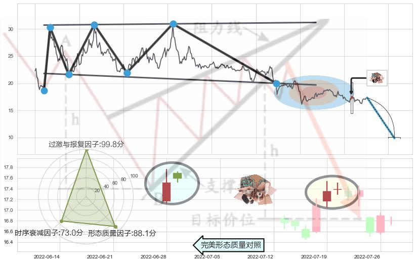 ➣ 高点影线(2022-07-28: 17.12 )→回踩→第一根k线低点(2022-07-22: 17.08 )