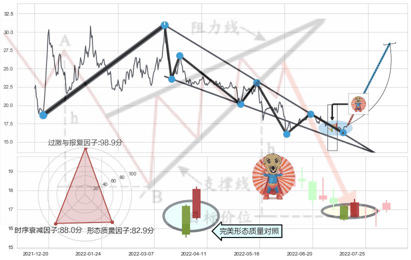 ♘ 支撑价格位16.78,可信任强度57.49%,距离最后交易2022-08-12形成的收盘价格17.35相差 -3.26%