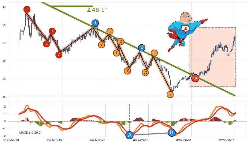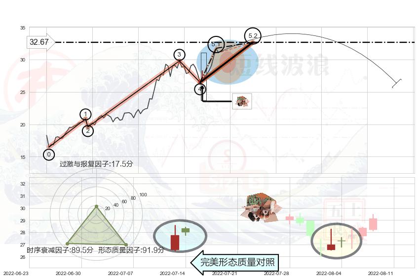 ➣ 5.1: 预测当前第5浪位置(2022-08-11, 31.75),仍然有上升空间
