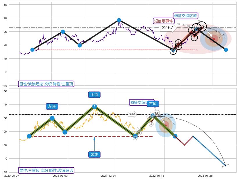 ➢ 波浪理论属【短级别信号事件】三重顶属【长级别信号事件】长短周期组合信号事件, 短长事件长度比13.91%