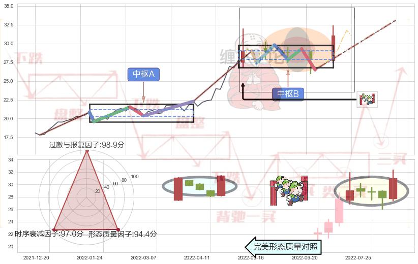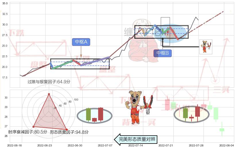 ➢ 【中枢B】:2022-07-13-2022-08-02,中枢由6笔构成,共15交易日, ZG=29.01, ZD=27.85