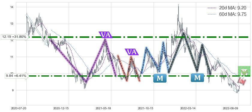 ♞ 20日均线:9.20,60日均线:9.75→ 快线<慢线