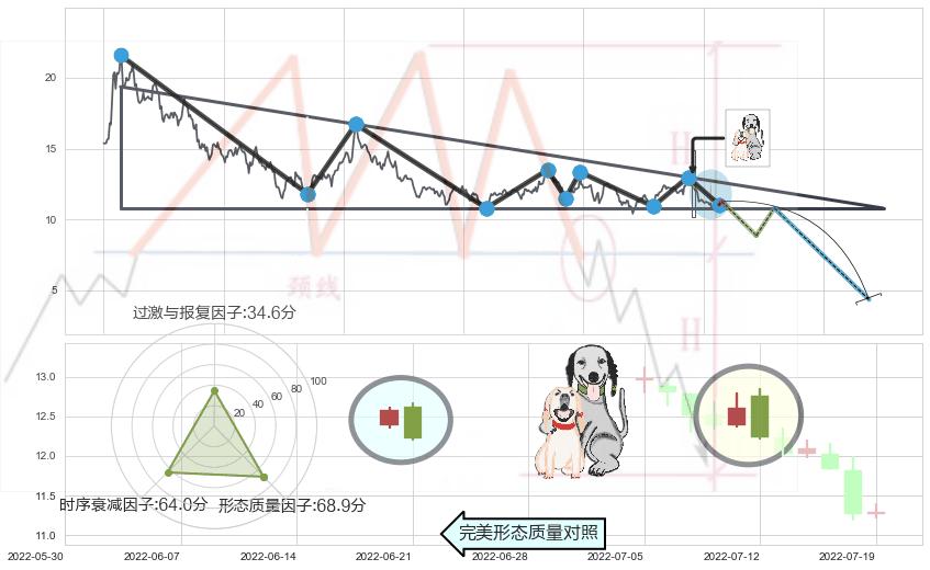➢ 【卖1】: 激进型 卖点→(2022-07-13: 12.10 )形成突破升⚑旗形【整理】形态