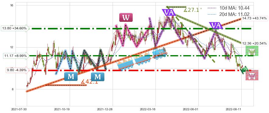 ♘ 阻力价格位11.17,可信任强度78.23%,距离最后交易2022-08-12形成的收盘价格10.25相差 +8.99%