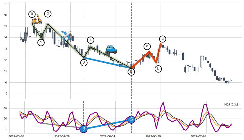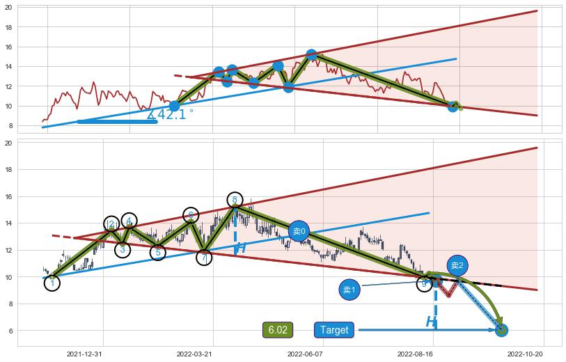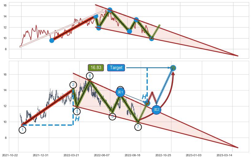 ➣ AI预测: 假定反转启动后, 第❸目标位置(2023-02-14, 15.20)