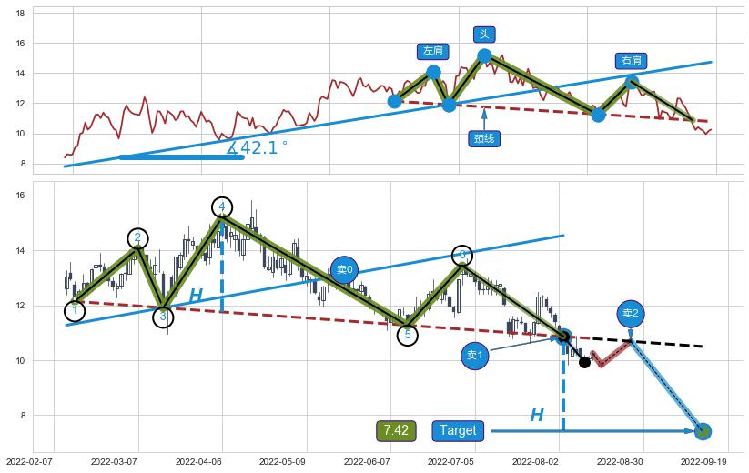 ➢ 【已确认突破】头肩顶 起点:2022-02-14,突破点:2022-08-03,形态共117交易日