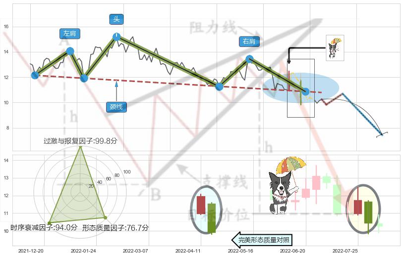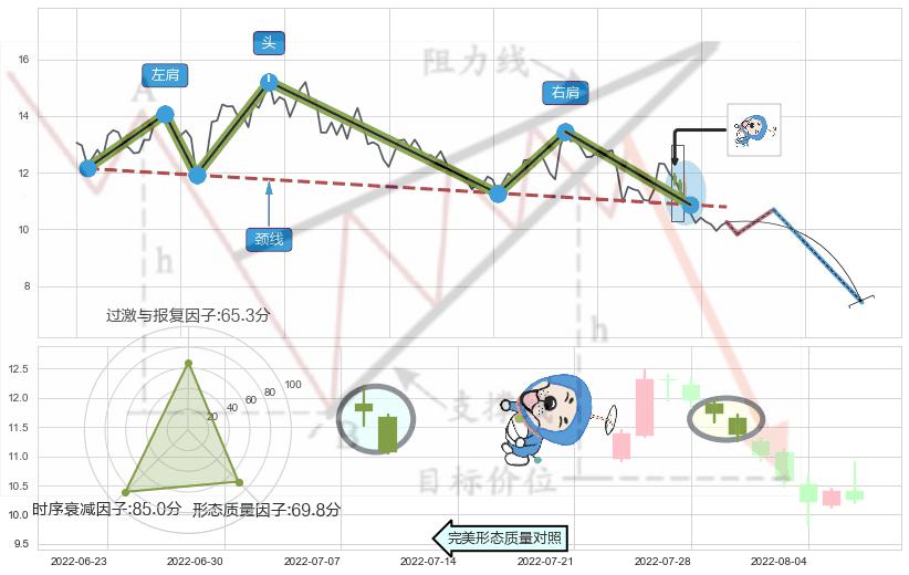 ➢ 【卖1】: 激进型 卖点→(2022-08-03: 10.86 )形成突破头肩顶【反转】形态