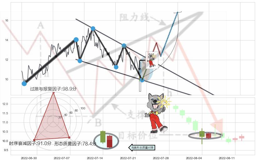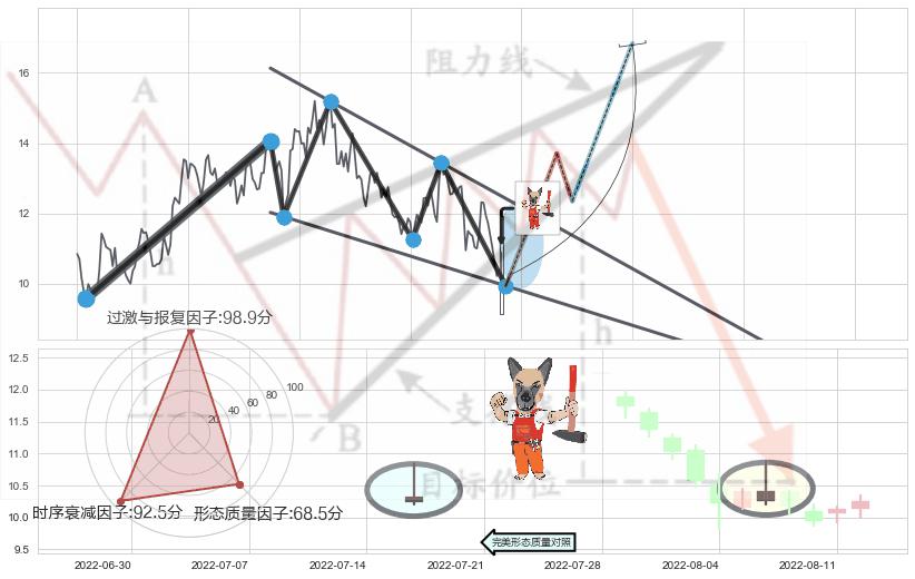 ♘ 支撑价格位9.80,可信任强度93.05%,距离最后交易2022-08-12形成的收盘价格10.25相差 -4.39%