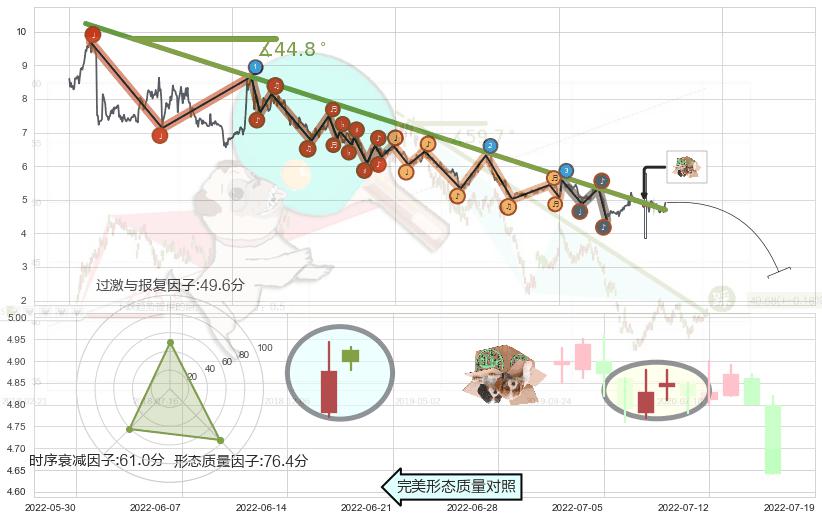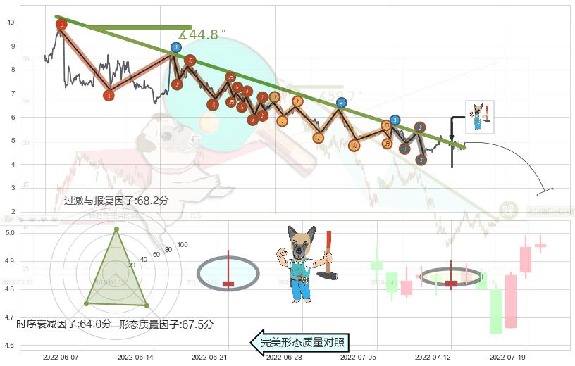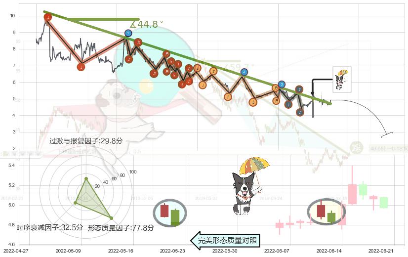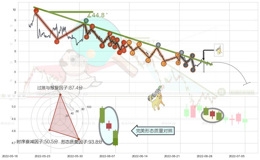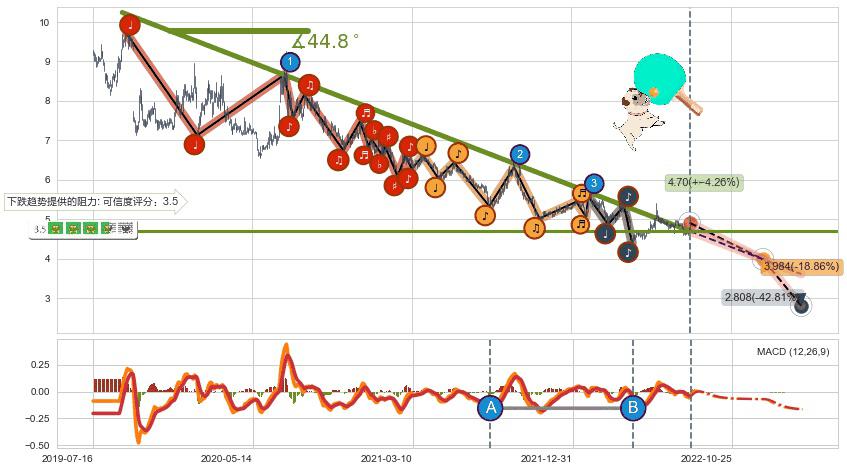 🦴 长线均值回复组合短线趋势跟踪[强阻力信号]2019-09-05-2022-06-14下跌趋势依然成立(下跌趋势跟踪依然存在),短线价格略微上行反弹(均值回复猜想),即将接近下跌趋势提供的未破位阻力价格:4.70。