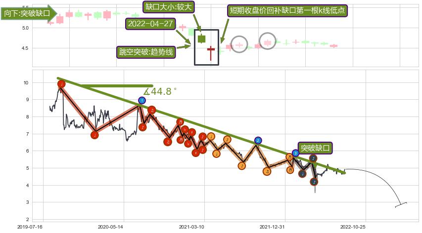 ➢ 2022-04-27形成:向下跳空【突破】缺口
