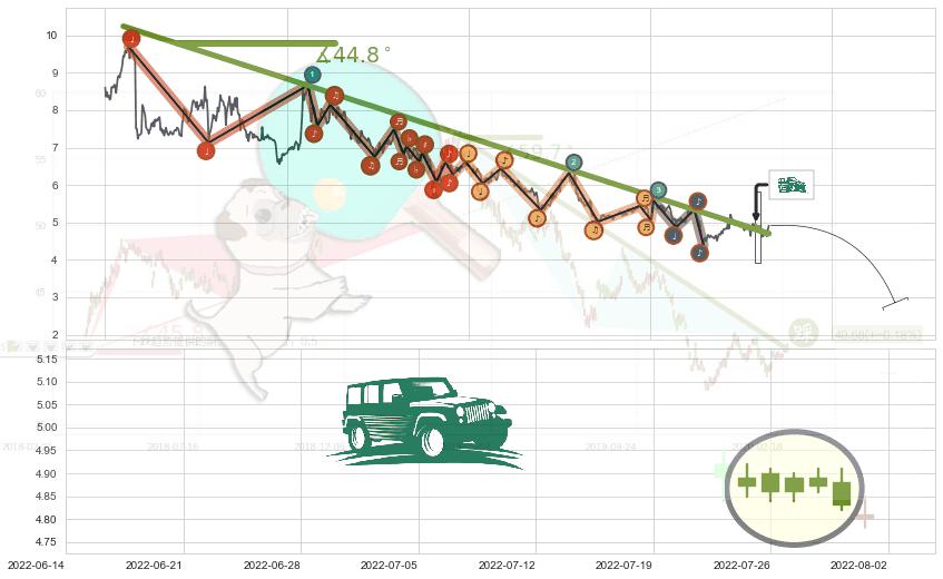 ➢ 【仅预测突破】最后价格:4.91与预测突破价格:5.04→【空间临近】后续最小【反转】第一目标价格→(2022-10-28: 5.99 )
