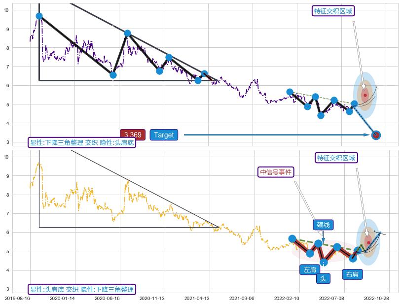 ➢ 头肩底属【中级别信号事件】下降三角整理属【长级别信号事件】中长周期组合信号事件,中长事件长度比36.76%