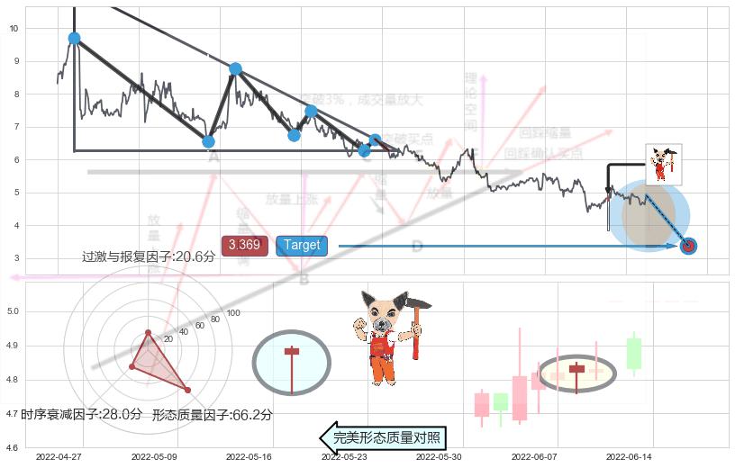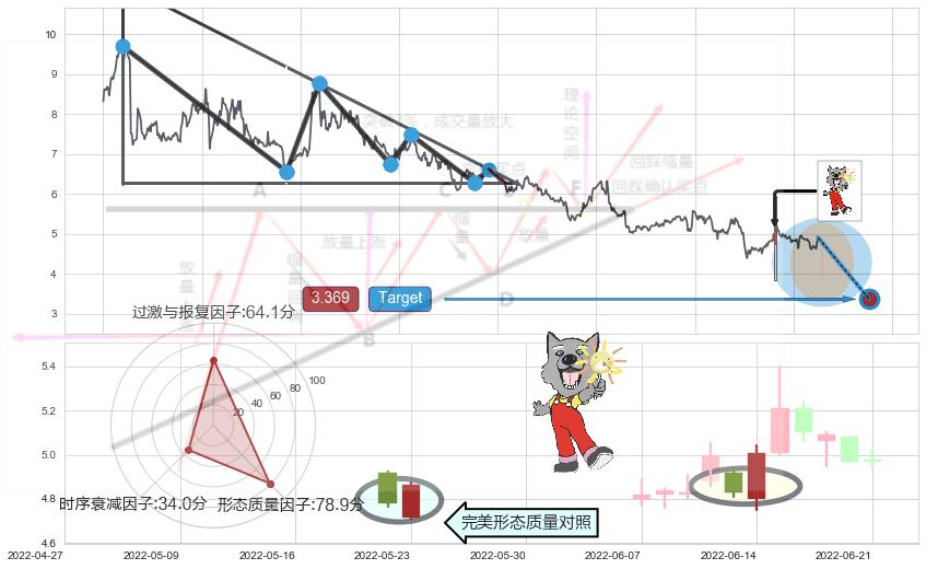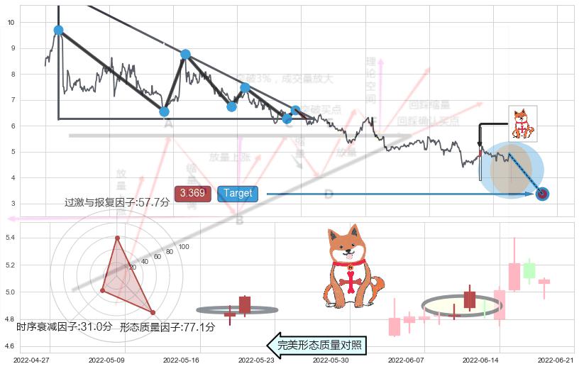 ➢ 🕰 价格走势在2022-06-13至2022-06-14期间形成曙光初现形态,残存影响值:3.45