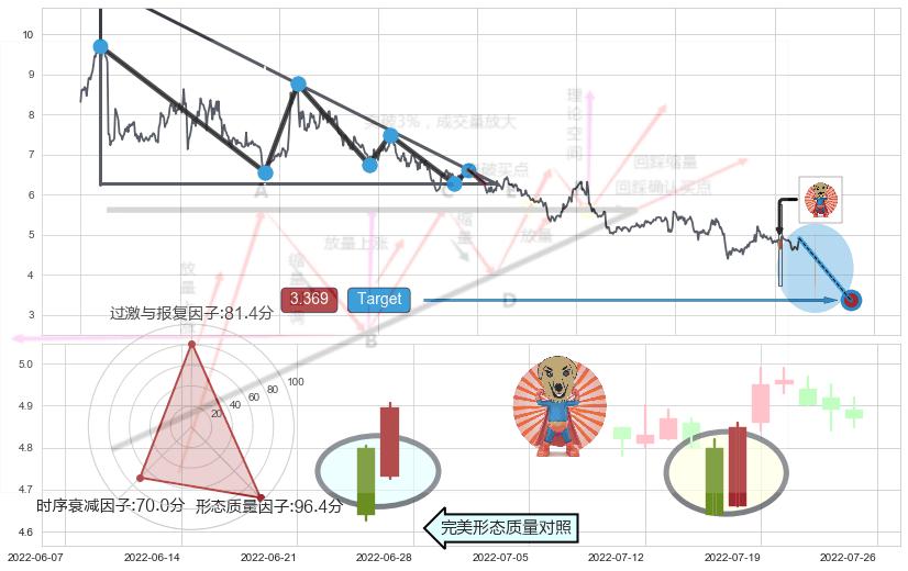 ➢ 🕰 价格走势在2022-07-22至2022-07-25期间形成底部尽头线(上山虎),残存影响值:3.47