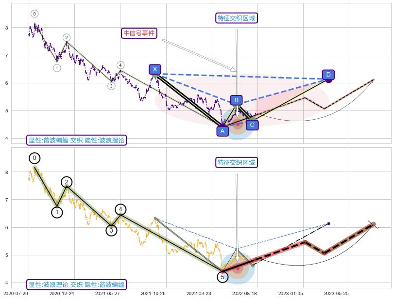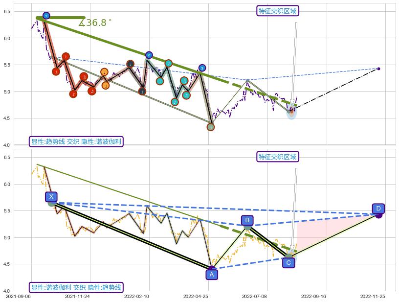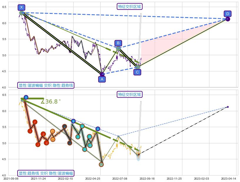 ➣ D点拟合预测价格6.13,距离最后交易收盘价格4.91相差 +24.77%