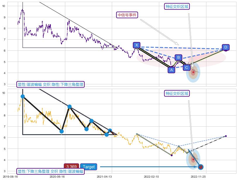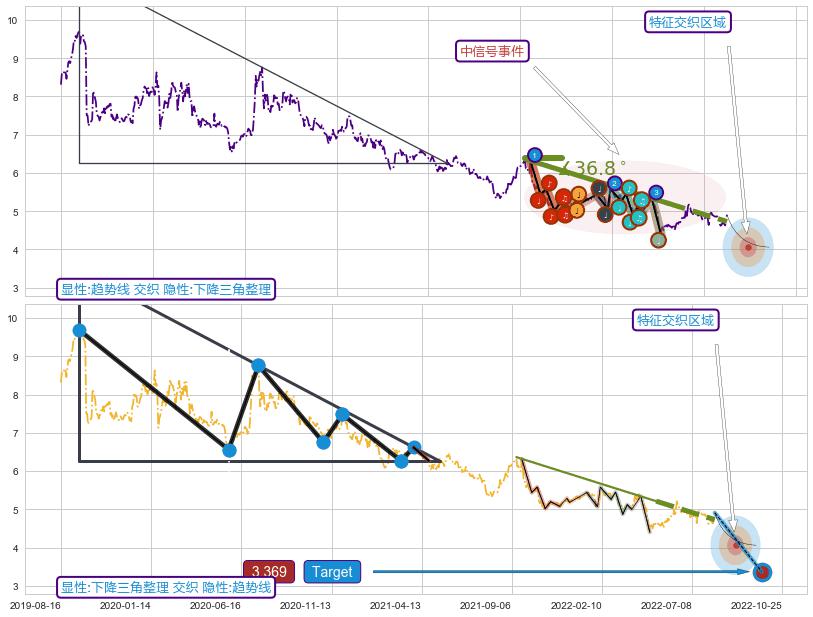➢ 趋势线属【中级别信号事件】下降三角整理属【长级别信号事件】中长周期组合信号事件,中长事件长度比56.30%
