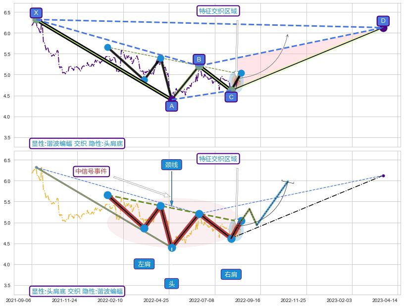 ➢ 头肩底属【中级别信号事件】谐波蝙蝠属【长级别信号事件】中长周期组合信号事件,中长事件长度比64.71%