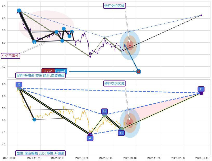 ➣ 未完成【蝙蝠】形态起点X: 2021-09-13, 已到达C点: 2022-08-03, 预测最终D点: 2023-03-23, 共380交易日