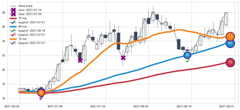 2021-06-23至2021-09-27 慢线与快线呈多头排列, 慢线与快线接触少,无缠绕