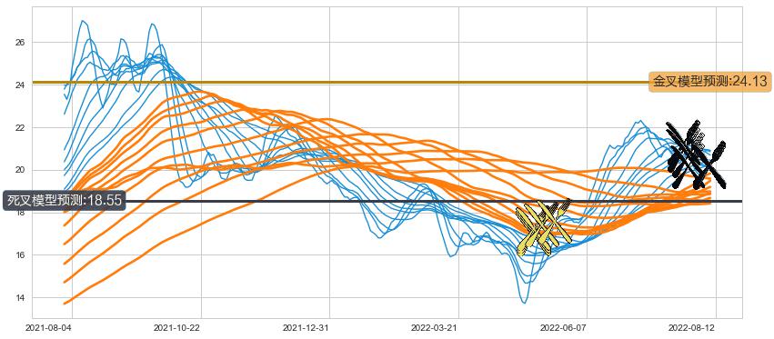 ➣ 60小时均线于(2022-08-11: 20.21)形成【死叉】基于【死叉历史模型】预测死叉后最低波谷价格: 17.41, 死叉后最低价格20.00,尚未达到预测最低波谷价格, 预期继续下跌