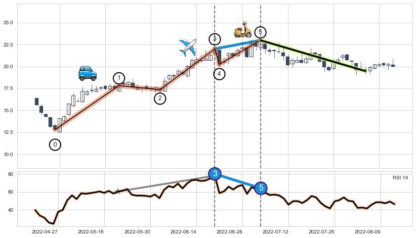 ➢ 第三,五驱动浪端点:【RSI】走势出现【常规背离 & 反转信号】背离程度99.00%,背离夹角角度95.8˚,背离程度较大