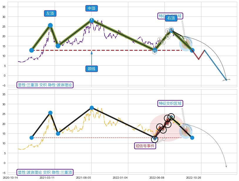 ➢ 波浪理论属【短级别信号事件】三重顶属【长级别信号事件】长短周期组合信号事件, 短长事件长度比15.83%