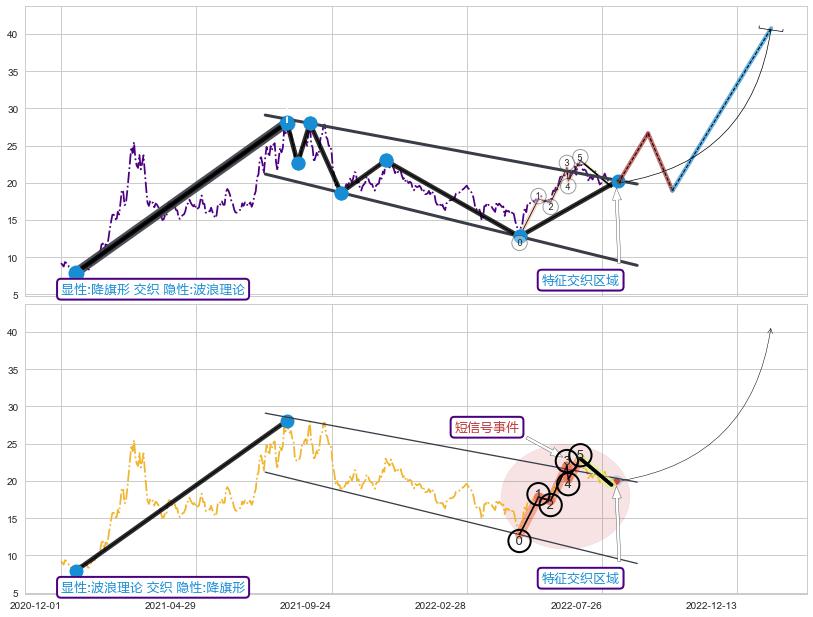 ➢ 波浪理论属【短级别信号事件】降旗形属【长级别信号事件】长短周期组合信号事件, 短长事件长度比17.12%