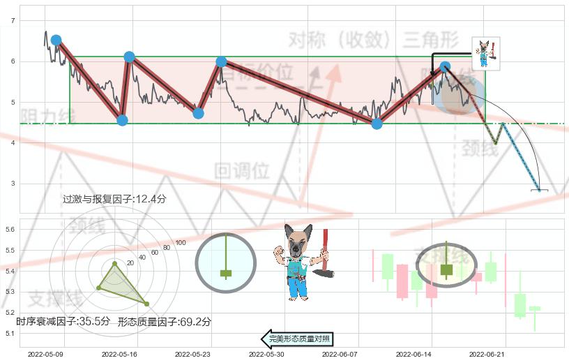 ➢ AI智能: 预测【多方力量耗尽】,矩形中继整理向下突破,预测将在2022-09-07突破矩形提供的颈线
