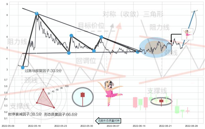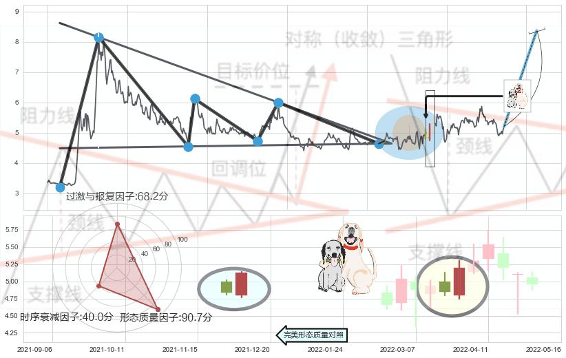➢ 【买1】: 激进型 买点 →(2021-12-29: 4.73 )形成突破上升【对称】三角形整理【整理】形态