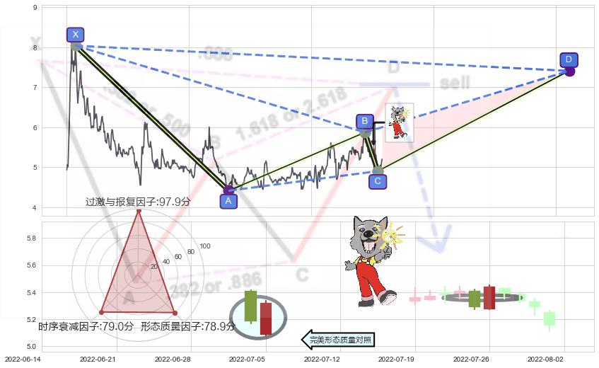 ➢ 未完成【蝙蝠】形态起点X: 2020-07-21, 已到达C点: 2022-08-03, 预测最终D点: 2023-10-16, 共809交易日