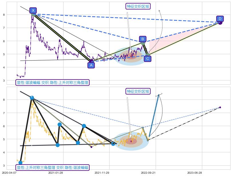 ➢ 谐波蝙蝠与上升对称三角整理信号事件周期长度级别相同,同周期信号事件