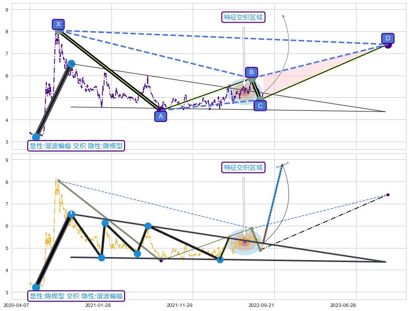 ➣ 未完成【蝙蝠】形态起点X: 2020-07-21, 已到达C点: 2022-08-03, 预测最终D点: 2023-10-16, 共809交易日