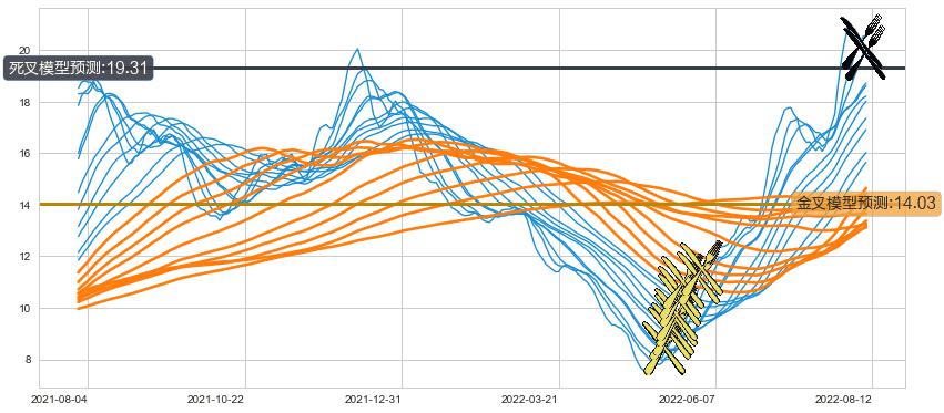 ➣ 13小时均线于(2022-08-11: 19.86)形成【死叉】基于【死叉历史模型】预测死叉后最低波谷价格: 19.17, 死叉后最低价格19.54,尚未达到预测最低波谷价格, 预期继续下跌