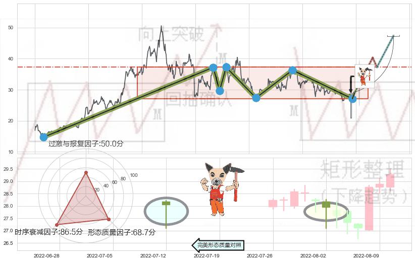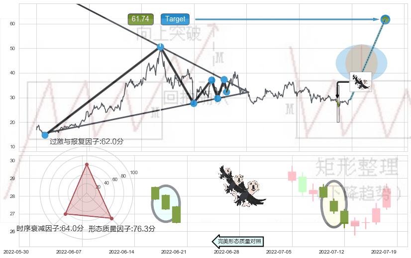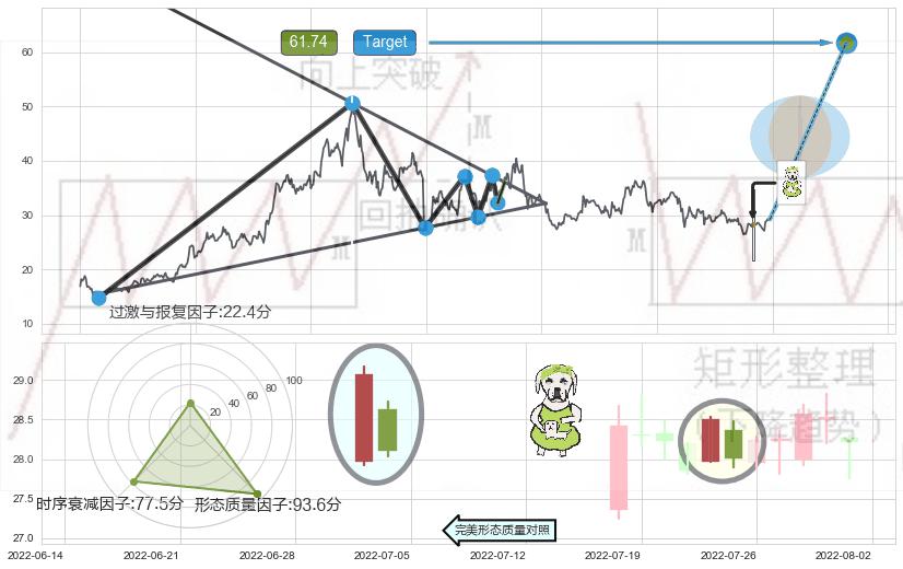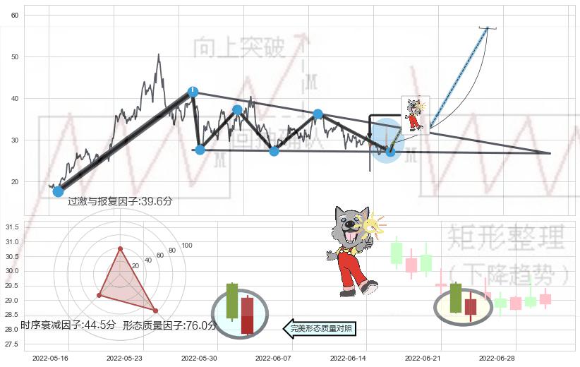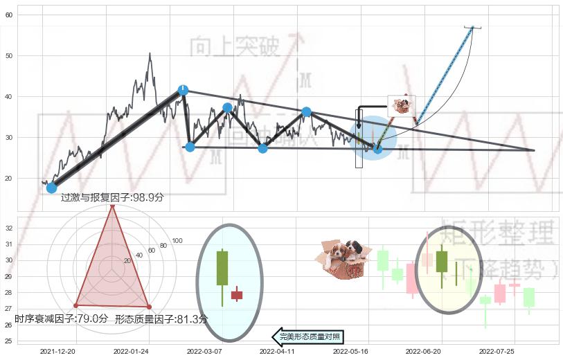 ➢ 【已确认突破】升🚩楔型 起点:2022-06-15,突破点:2022-07-29,形态共33交易日