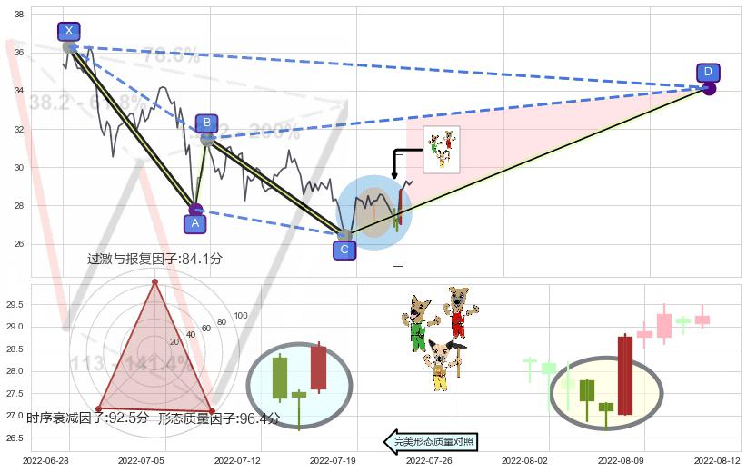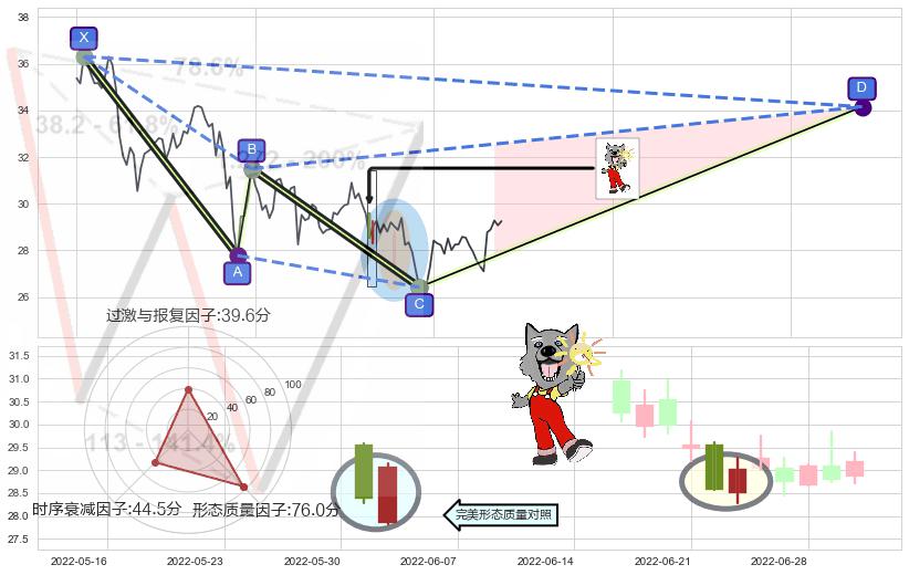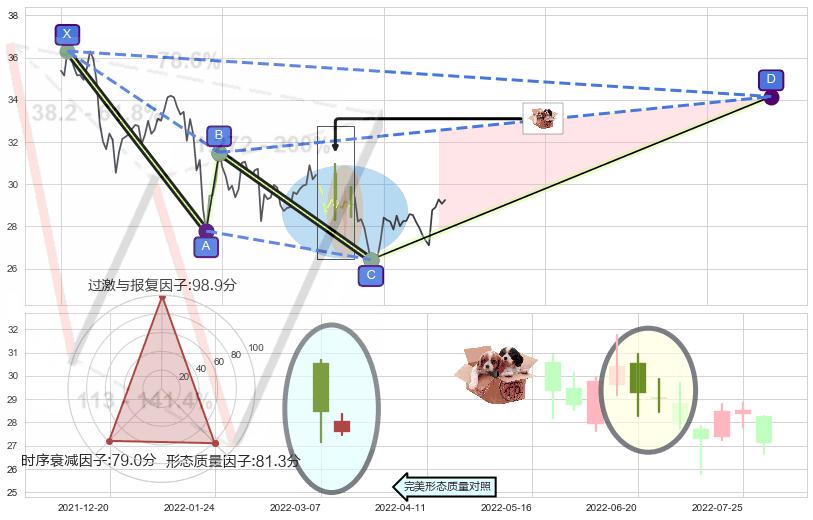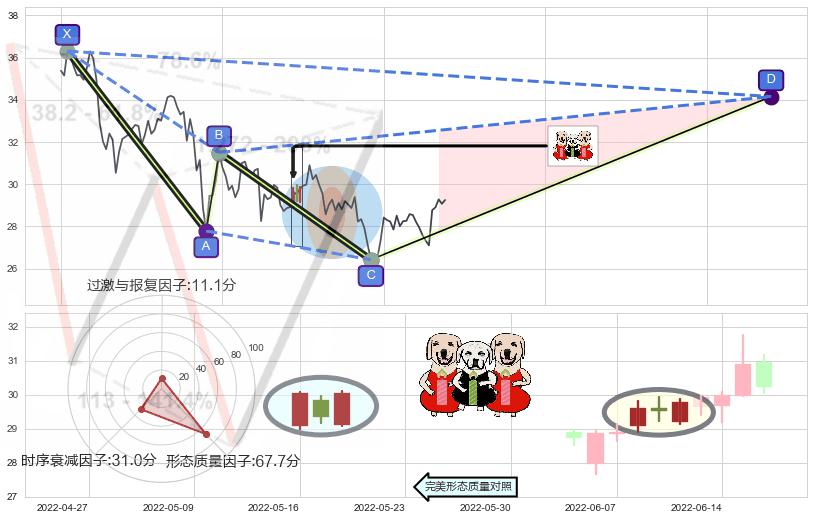 ➢ 曙光初现形态 🔜 谐波赛福下沉击穿c上涨拐点 综合量化分数:51.80 【中性】