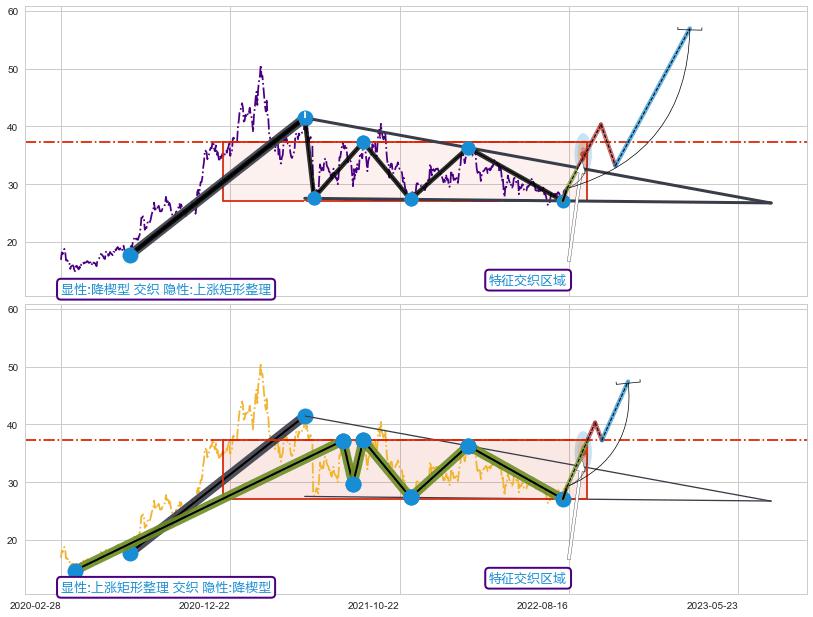 ➣ 上涨矩形整理:猜想临近关键阻力位突破点 → 临近拐点上涨 → 机会信号 → 大趋势均值回复