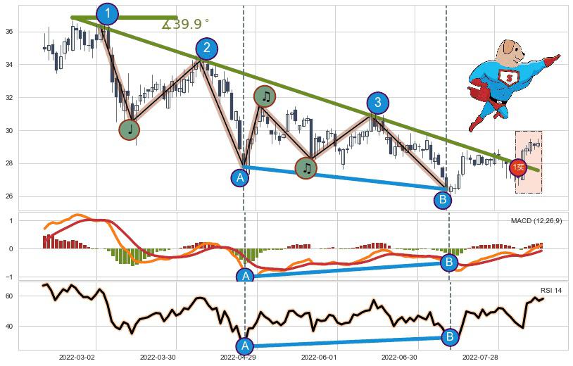 ⚔️ 2022-02-22-2022-07-21下跌趋势存在反转上涨[机会],其原下跌趋势的阻力位(27.56)已被突破[强支撑信号],原下跌趋势角度: 39.9˚