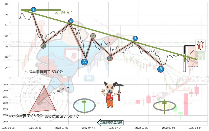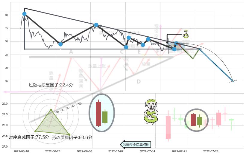 ➢ 【已确认突破】升🚩楔型 起点:2022-06-15,突破点:2022-07-29,形态共33交易日
