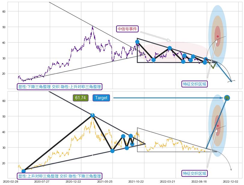 ➢ 下降三角整理属【中级别信号事件】上升对称三角整理属【长级别信号事件】中长周期组合信号事件,中长事件长度比62.61%
