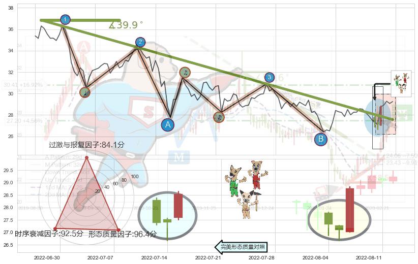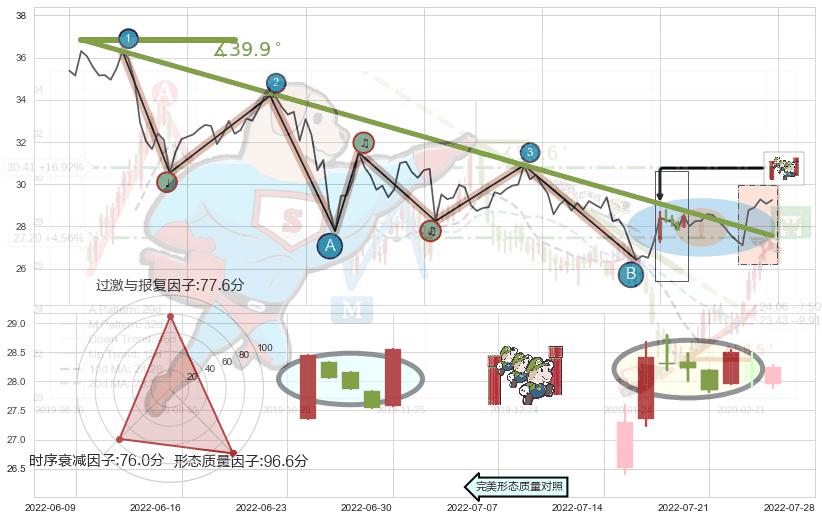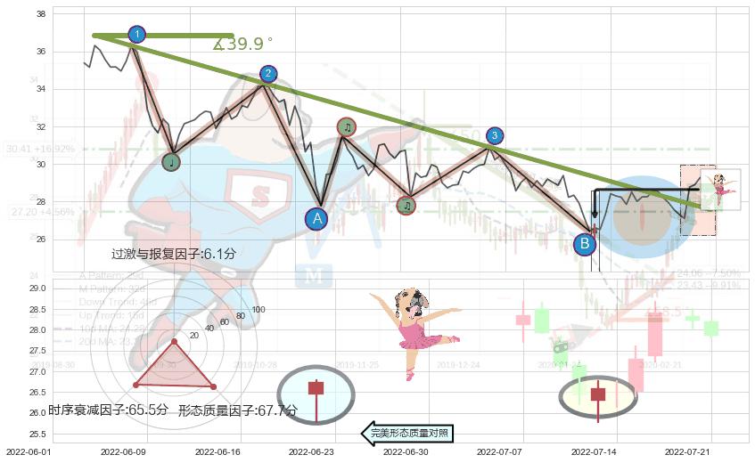 ➢ 2022-02-22-2022-07-21下跌趋势存在反转上涨[机会],其原下跌趋势的阻力位(27.56)已被突破[强支撑信号],原下跌趋势角度: 39.9˚