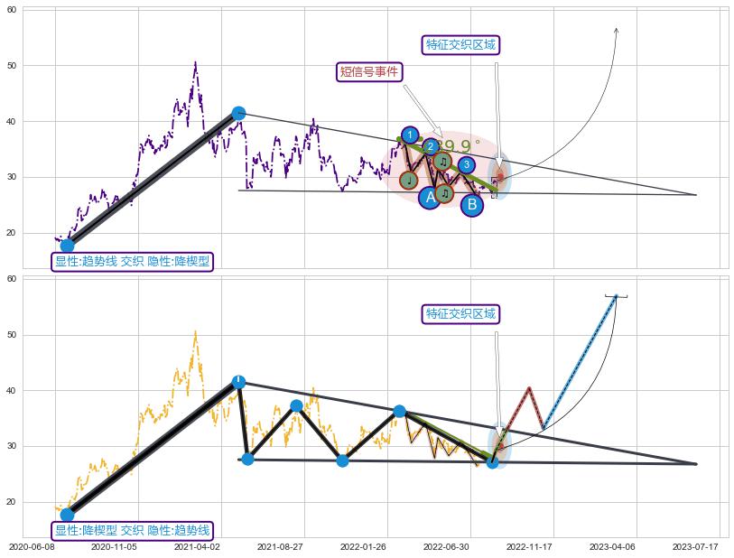 ➢ 趋势线属【短级别信号事件】降楔型属【长级别信号事件】长短周期组合信号事件, 短长事件长度比21.81%