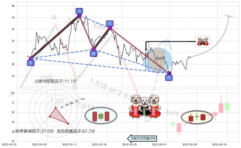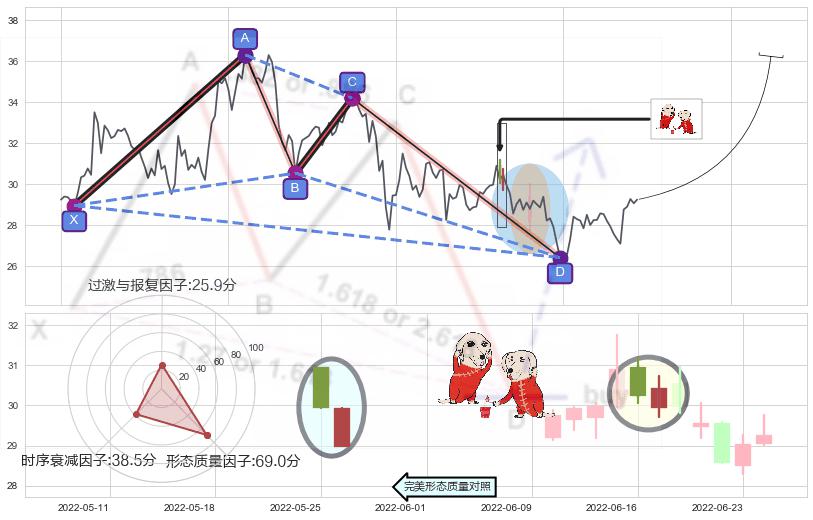 ➢ 曙光初现形态 🔜 谐波蝴蝶d拐点上涨支撑 综合量化分数:51.39 【中性】