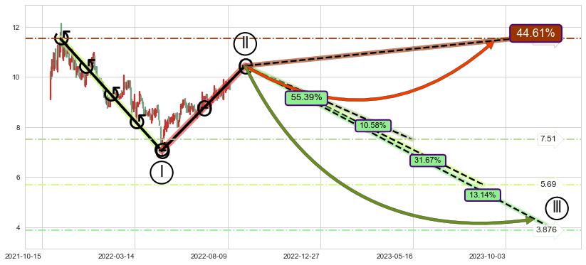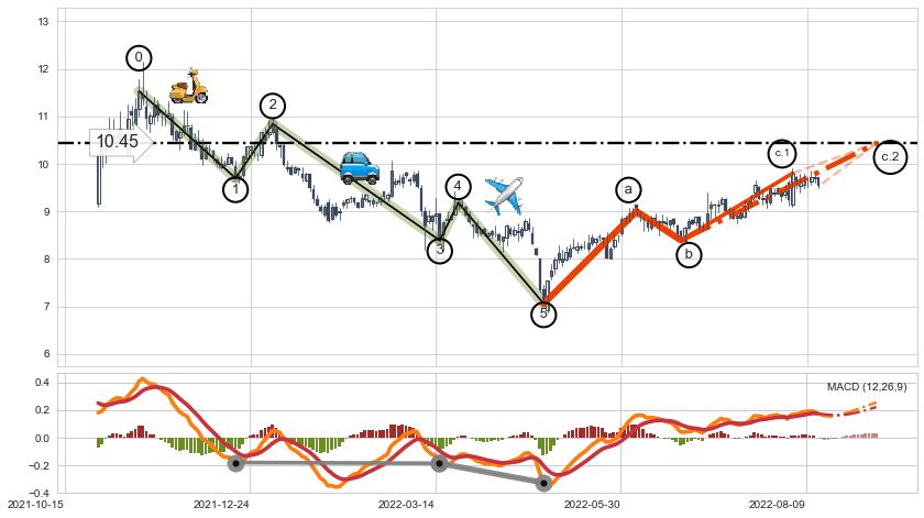 ➣ c.1: 当前c浪回调位置(2022-08-03, 9.80),仍然有回调空间