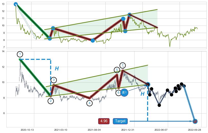 ➣ 最小中继整理跌幅→𝐇: 4.76 (𝐇旗杆的长度:旗杆起点→顶点)
